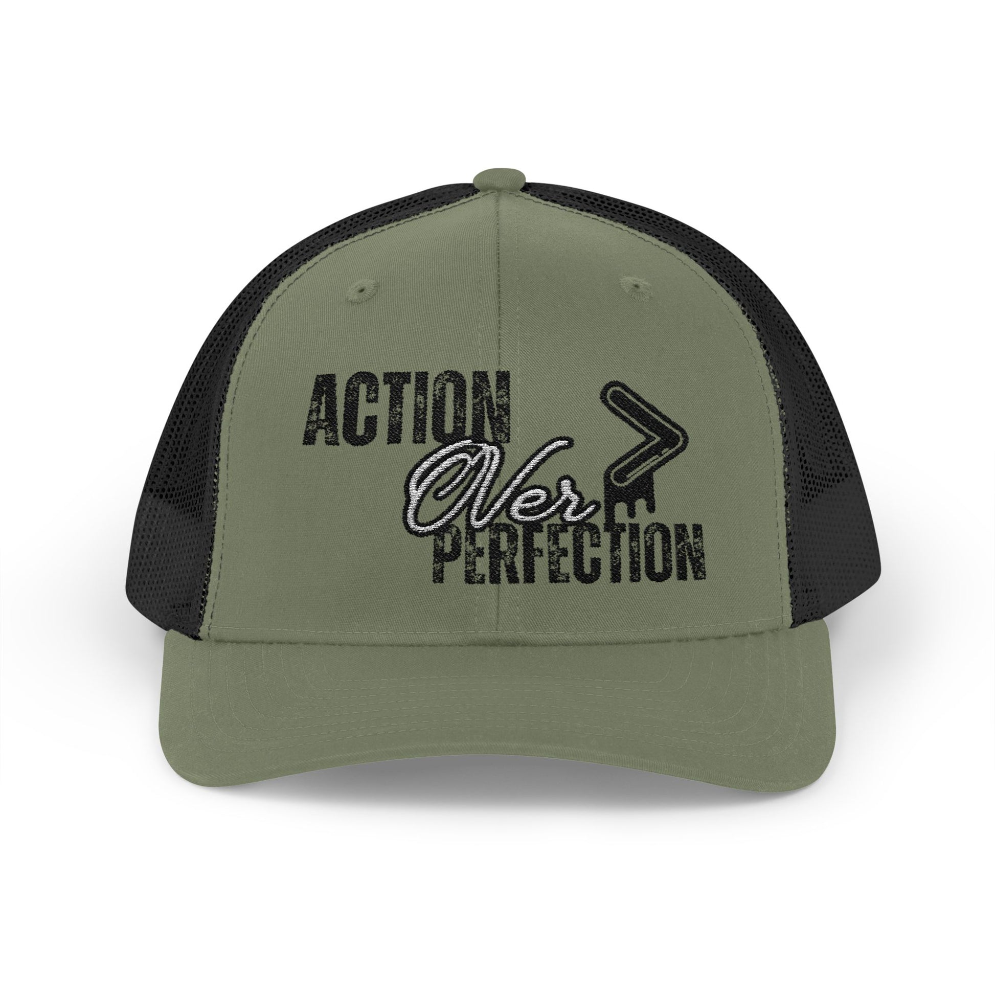 Built on the iconic Yupoong 6606 frame, this snapback delivers structure, comfort, and grit — the same traits that drive your journey. The “Action Over Perfection” embroidery reminds you to move forward, even when it’s not perfect. Because growth doesn’t happen when you wait — it happens when you act.